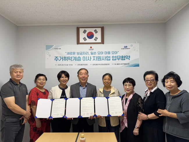 서울 성북구 장위2동은 지난 9월 19일 동 주민센터, 지역사회보장협의체, 하나물류 사회적협동조합 이사공감이 업무 협약을 체결하고 향후 3년간 저소득 가구 12곳에 이사 지원 서비스를 제공한다고 밝혔다. 사업은 매년 4가구를 선정해 이사 비용 부담을 덜어주고 지역사회 나눔 문화를 확산하는 것을 목표로 한다.